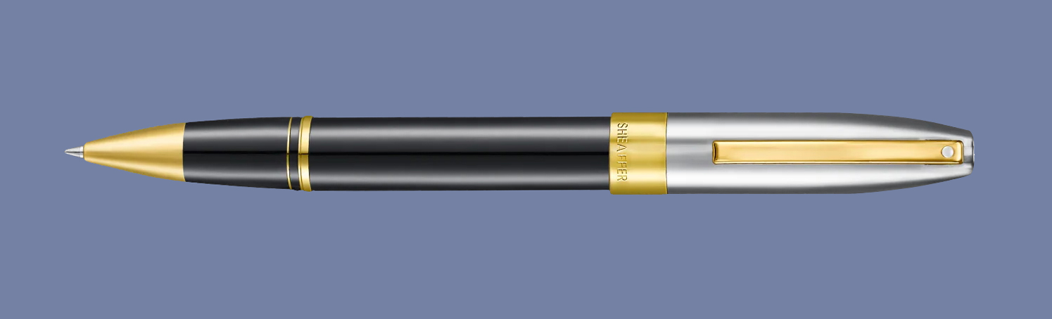 Korpus pióra pokryty został czarnym lakierem o wysokim połysku, natomiast skuwka wykończona jest elegancką chromowaną powierzchnią. Elementy wykończeniowe pokryto trwałą powłoką PVD o zawartości 14-karatowego złota, co nadaje całości luksusowego charakteru oraz zwiększa odporność na ścieranie. Charakterystyczna biała kropka na klipsie – symbol marki Sheaffer – podkreśla autentyczność modelu. Ergonomiczny kształt oraz odpowiednie wyważenie zapewniają komfortowe pisanie nawet podczas dłuższego użytkowania.